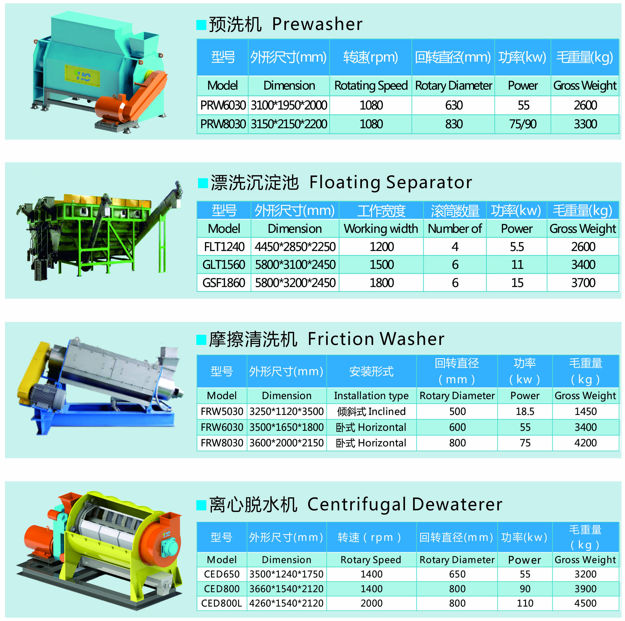根據(jù)根不同生產(chǎn)需求廢舊塑料回收再生生產(chǎn)線可能包括如下設(shè)備